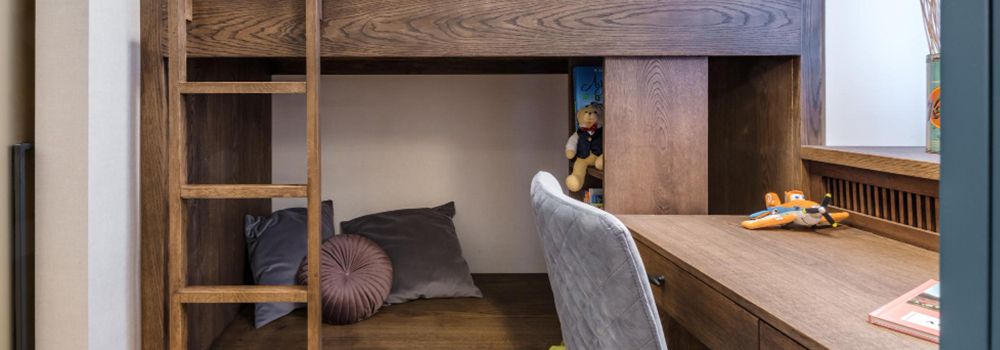 L'arredo cameretta con letto a castello e postazione studio richiede un'attenta progettazione degli spazi interni.